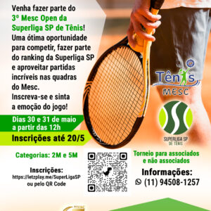 📅 23, 24, 25 e 26 de maio💰 R$ 80 por atleta🏆 Categorias A, B e C 📞 Informações: (11) 96830-9809 ...