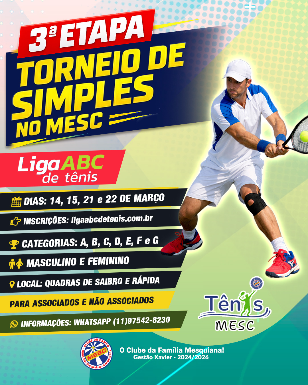 Local: Quadras de saibro e rápida – MESC