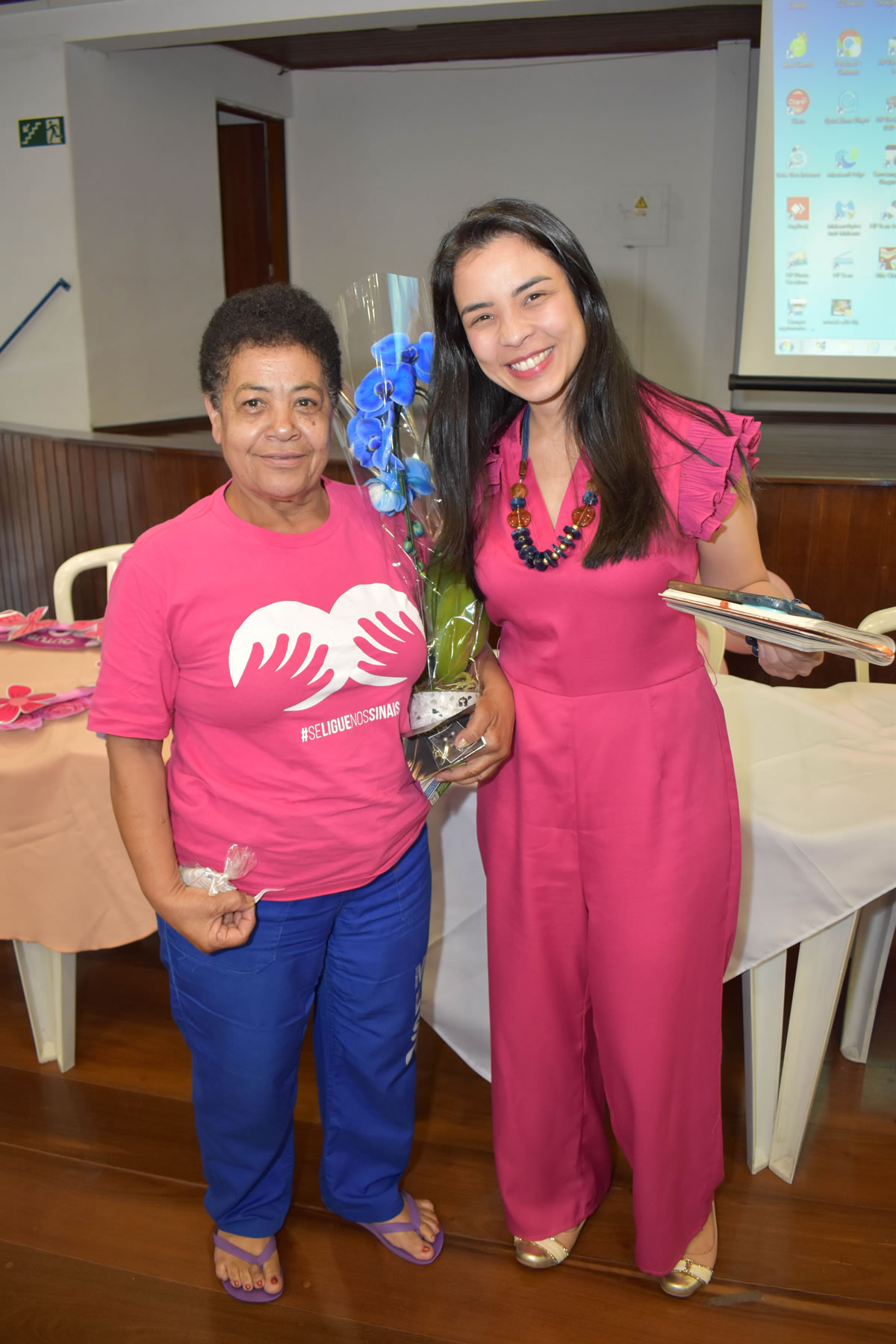 A programação contou com duas palestras de prevenção ao câncer de mama e do colo do útero, ministradas por Gleice de Fátima Maésta da Silva, Tatiane e Patrícia, que abordaram temas como diagnóstico precoce, hábitos saudáveis e a importância do autocuidado.