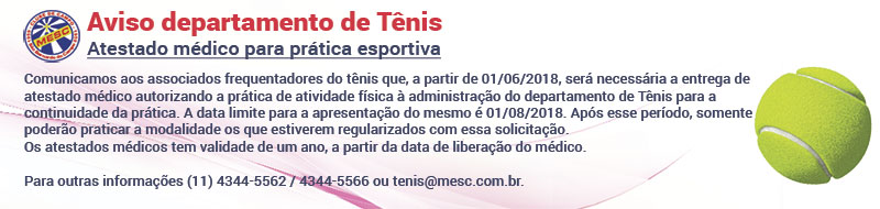 Demais informações podem ser obtidas pelo telefone 4344-5562 ou por e-mail tenis@mesc.com.br